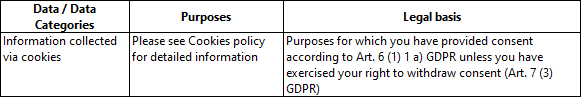 • Information collected with cookies